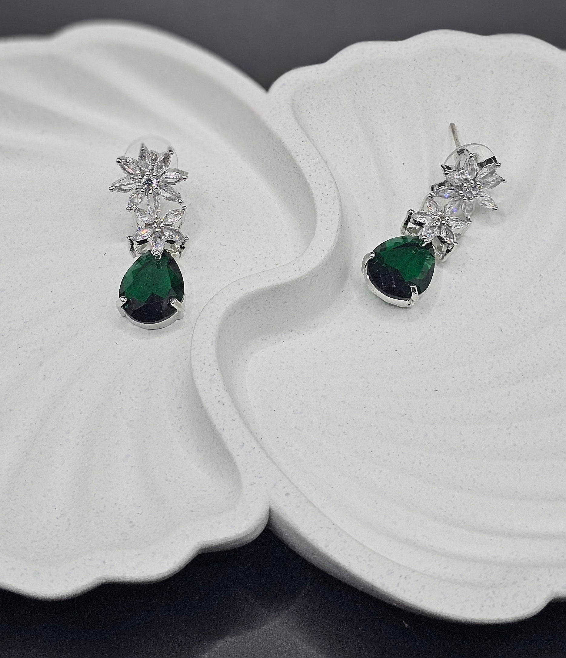 Add a touch of timeless charm with these elegant Silver & Emerald Green Earrings. Featuring a delicate blend of shimmering silver tones and deep emerald-green stones, this pair exudes sophistication and versatility. Perfect for both everyday elegance and special occasions, these earrings bring a refreshing pop of color to any look.